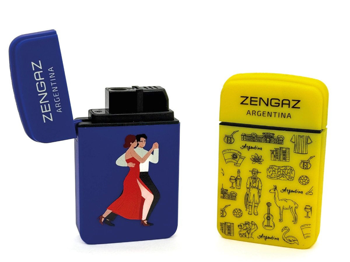 Encendedores Zengaz ZL - 12 - Argentina (CUBO) Súper resistentes, recargables, fabricados con la innovadora tecnología de llama fija segura. Simple JET Con diseños únicos que homenajean nuestra cultura Argentina y con llama ajustable para que tengas siempre el mejor fuego al alcance. ¡Estilo y calidad que acompañan tu día a día!