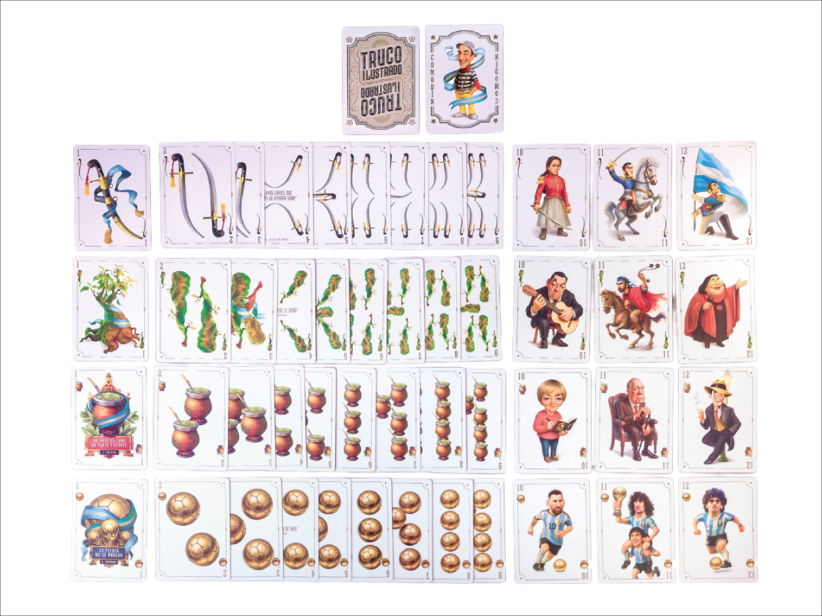 Descubrí una pieza de arte única en cada partida con el mazo de Truco Ilustrado, una creación exclusiva del reconocido artista e ilustrador Jo Rivadulla. Estos naipes de estilo español rinden un homenaje visual a la identidad y cultura argentina, reemplazando las figuras tradicionales por ilustraciones detalladas de personajes ilustres que marcaron la historia del país. Desde la genialidad deportiva de Diego Maradona y Lionel Messi hasta las voces eternas de Carlos Gardel y Mercedes Sosa, cada carta transforma el juego en un recorrido por los grandes íconos nacionales. Es el artículo de colección definitivo para quienes buscan fusionar la pasión por el diseño de autor con la tradición del truco argentino, elevando cada encuentro con una estética sofisticada y llena de historia. El mazo cuenta con un total de 50 cartas impresas con alta fidelidad para preservar la calidad de los trazos y el colorido original del artista. Incluye 2 comodines.